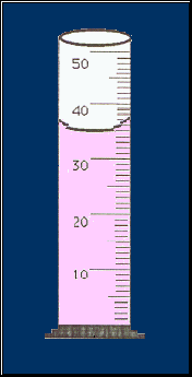The reading below is at 35 ml. The cylinder is graduated