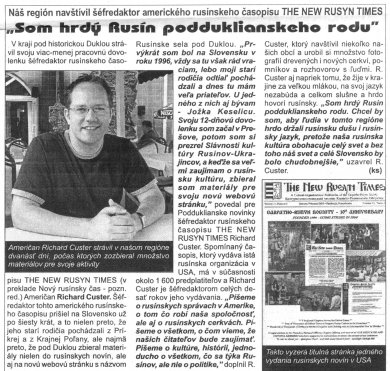 časopisu THE NEW RUSYN TIMES Richard Custer. Spomínaný