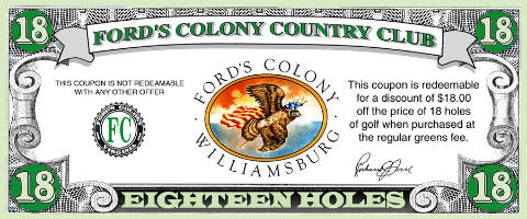Save $18 When You Play 18! Print this page and present it at the Pro Shop for eighteen dollars off the current retail golf rate. Not valid with any other offer, proper attire required, limit ONE per golfer.