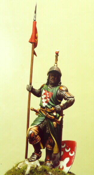 Così si profila un soldatino ideale, un signorotto appiedato, in posizione d’attesa, completo di tutto punto, con un’armatura “datata”.